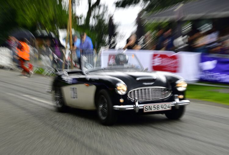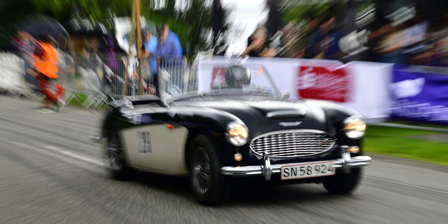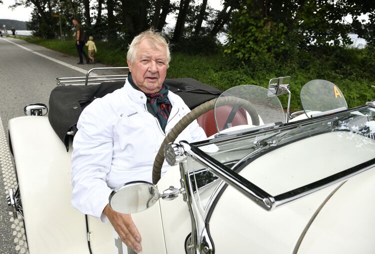 Fra Dragør kommer hotelejer Hans Geschwendter vanen tro i sin Austin-Healey 3000 fra 1959. En lækker sportsvogn i sin tid, men et bæst på rallypisterne, hvor den fik tilnavnet ”The Pig”.