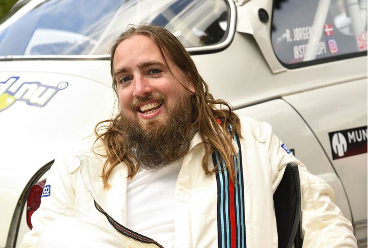 Løbets yngste bil: Rallykøreren Hans Erik Madsen kommer i denne hurtige Subaru Impreza fra 1995.