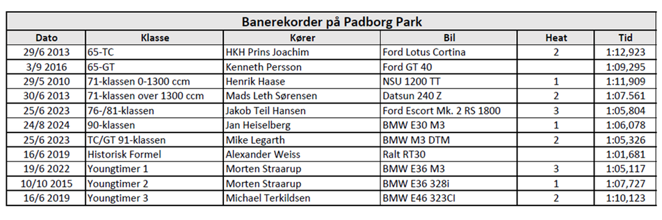 I weekendens løb på Padborg Park satte Jan Heiselberg ny banerekord med sin BMW E30 M3 på 1:06,078, hvilket er 0,8 sek. Hurtigere end den tid, som Steen Guldahl Andersen satte i 2023 – også med en BMW M3.